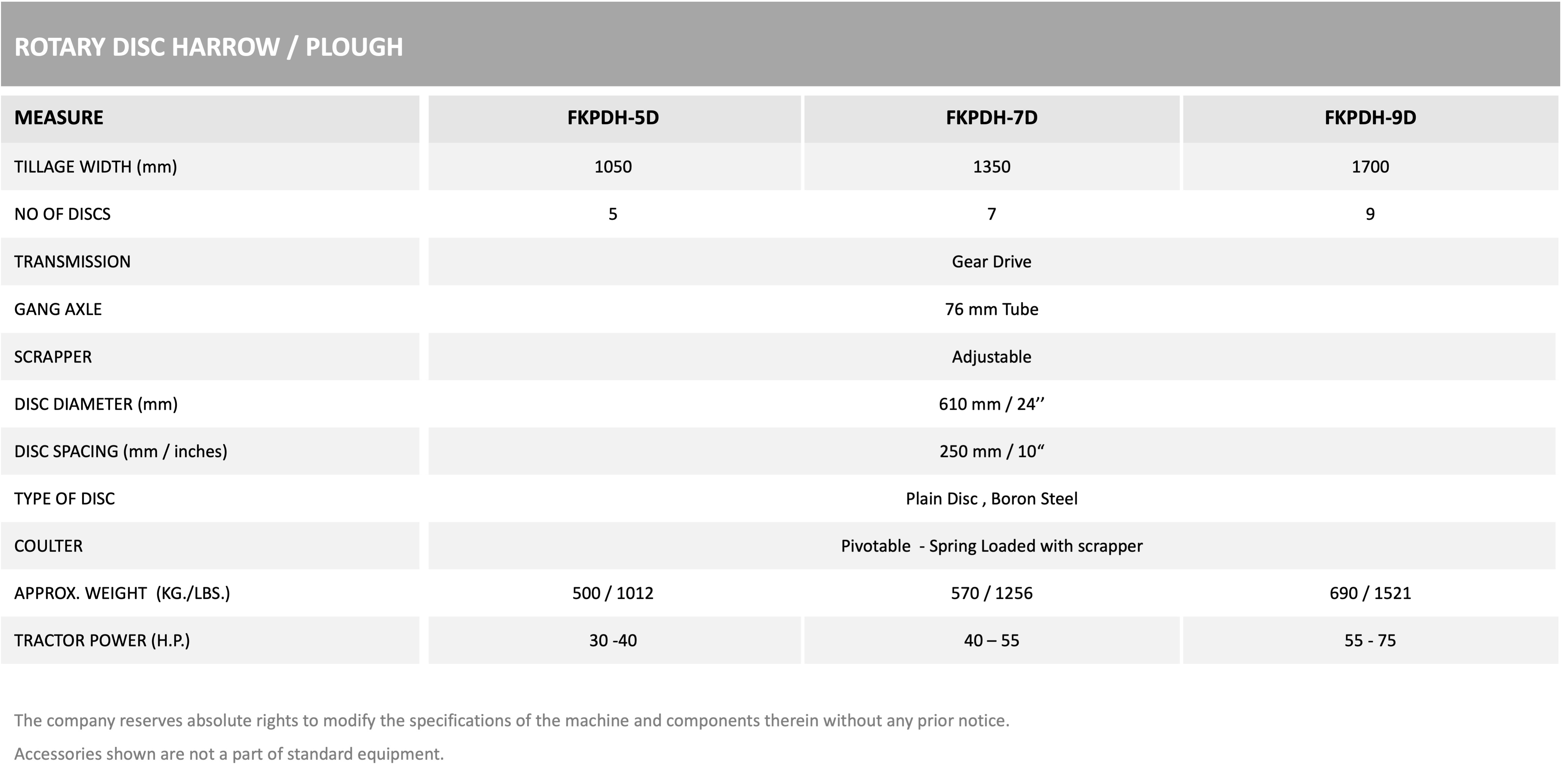 Available in Various Disc configurations. Contact for more details