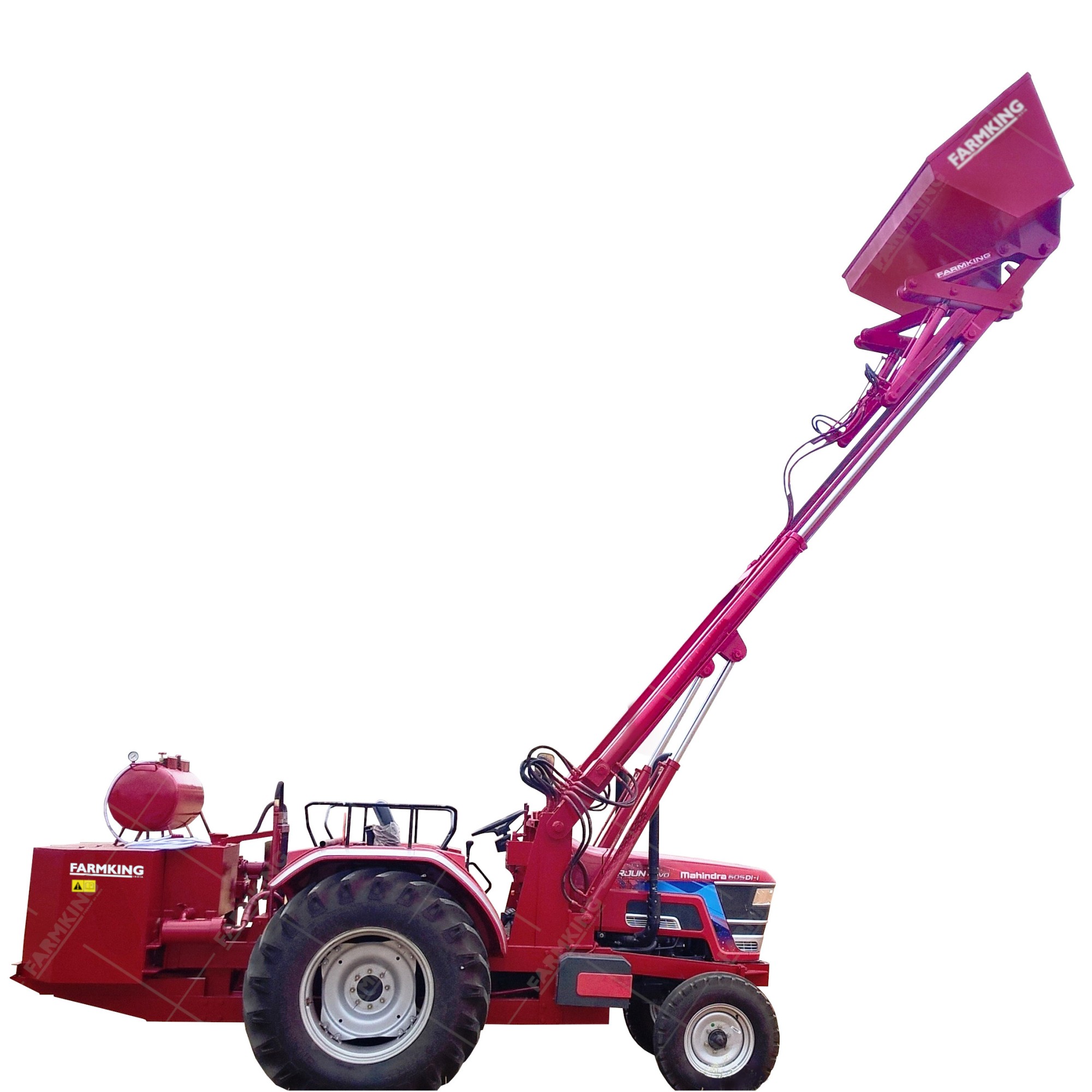 FARMKING Telescopic Loader is used to load bulky materials such as husk, cotton, etc. with maximum dumping height of 24ft.